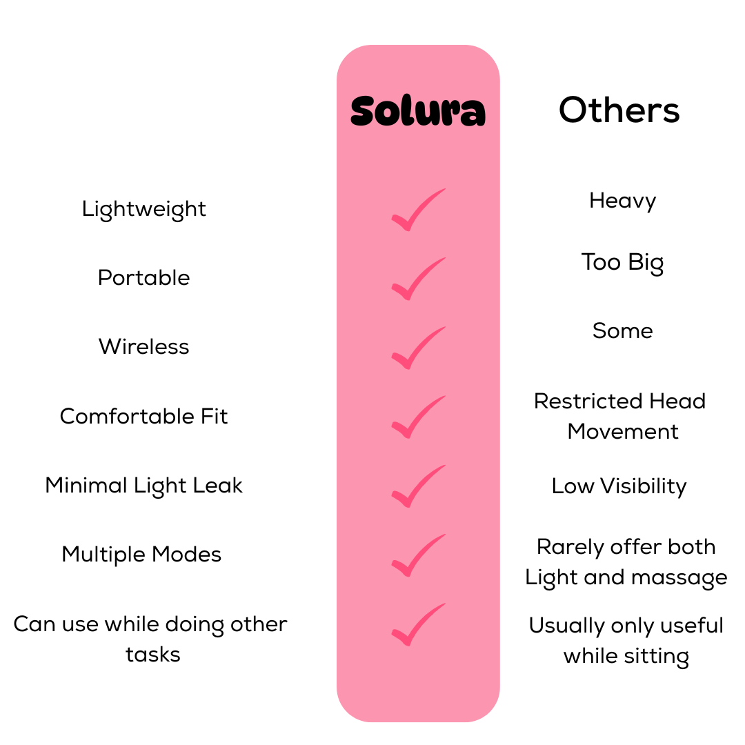 Lightweight, wireless, and effortless to use, Solura combines gentle massage, red light therapy, and smart EMS technology to reduce puffiness, ease tension, and brighten tired eyes. Whether you’re unwinding after a long day or adding a touch of luxury to your self-care routine, Solura brings the spa experience home anytime, anywhere.